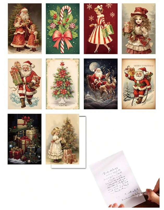 10 Sheets Christmas Greeting Cards Beautiful Designs for Every Holiday Moment Capture the spirit of the season with our 10 Sheets Christmas Greeting Cards. This festive set features 10 unique postcard designs, each filled with classic holiday imagery such as Santa Claus, snowy landscapes, and cheerful Christmas scenes. Perfect for spreading joy, these cards are…