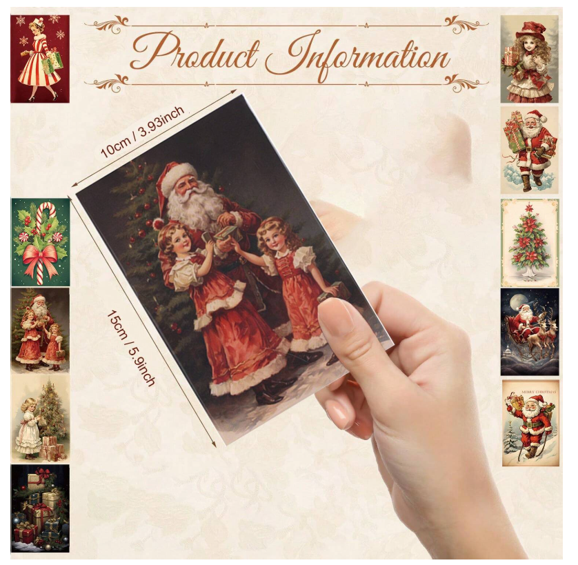 Capture the spirit of the season with our 10 Sheets Christmas Greeting Cards. This festive set features 10 unique postcard designs, each filled with classic holiday imagery such as Santa Claus, snowy landscapes, and cheerful Christmas scenes. Perfect for spreading joy, these cards are sure to warm the hearts of your friends and relatives this holiday season. Whether you’re sending wishes to loved ones or decorating your space, the charm of these cards adds the perfect touch to your celebrations.